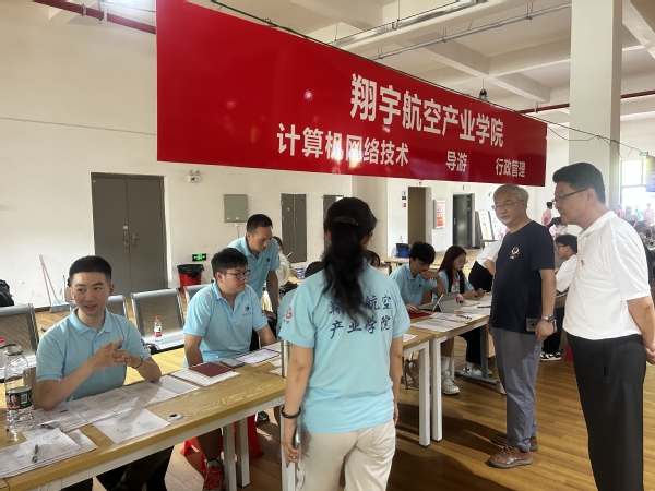翔宇航空产业学院所有老师也加入到迎新队伍,更有一些新生提前来到学校,用最短的时间熟悉了报到流程和校园环境,加入到迎新的工作中。