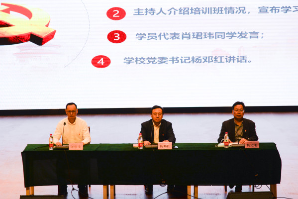 4月14日晚,xingkong登录入口在国际学术交流中心报告厅举行第二十九期党校开班典礼。校党委书记杨邓红、党委副书记杨之毛、学生工作部部长汪崇文及党群工作部人员、各党支部书记,380名入党积极分子培训班学员参加典礼。