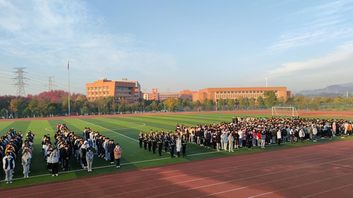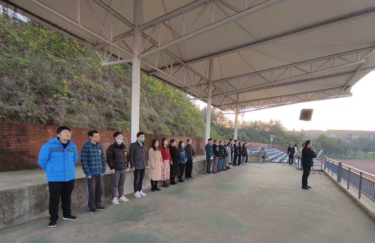 20211115早上七点理工学部1100名师生在田径场举行庄严的升旗仪式伴随着晨风迎着朝霞,升旗仪式正式开始,校国旗班的同学气宇轩昂,踏着整齐的步伐护送国旗走向升旗点。伴随着雄壮的《义勇军进行曲》,五星红旗冉冉升起,全体师生怀着无比崇敬的心情,庄严肃立,行注目礼,表达了全体师生坚定听党话,感党恩,跟党走的理想信念。