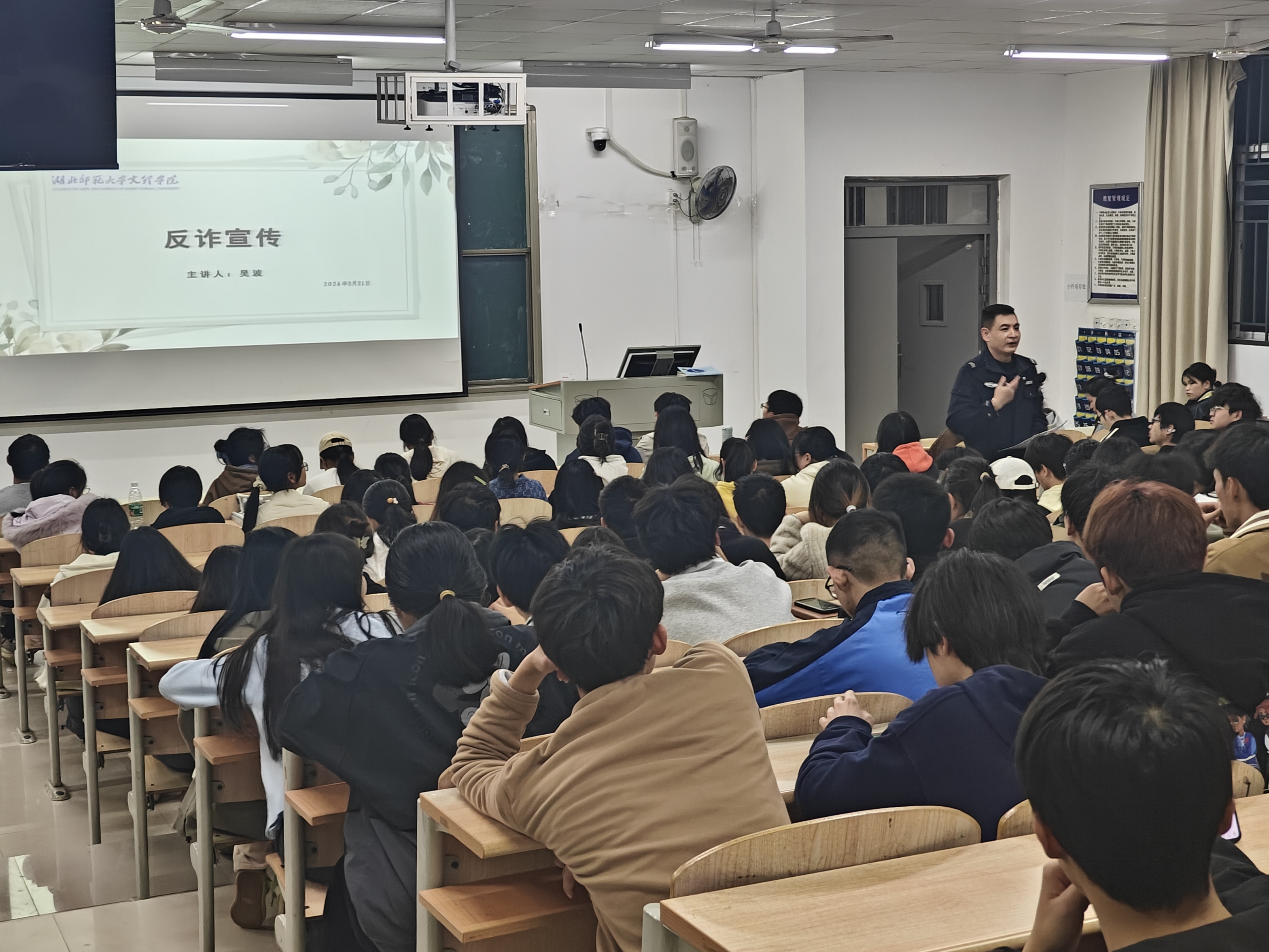 吴警官通过分析身边鲜活的电信诈骗案例,向青年学子讲述了网络刷单、AI智能诈骗、网上购物诈骗等电信诈骗的特点、惯用手段及反诈知识和技巧,引导青年学子擦亮眼睛,守住自我教育、自我管理的第一道关口。