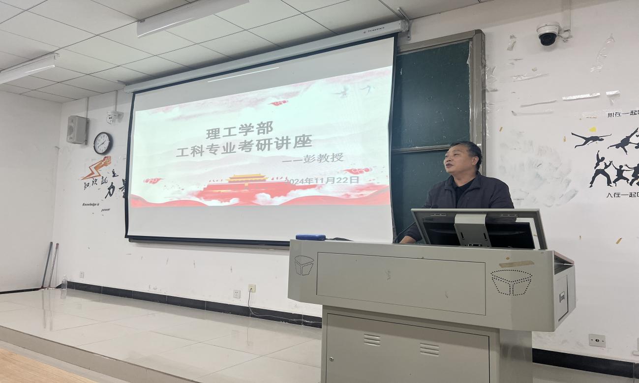 为进一步提升理工学部人才培养质量,充分调动学部工科专业学生考研积极性,加强学生对考研政策的了解,坚定考研方向。理工学部邀请彭绪富教授于20241122日下午2点半在教学楼1B213教室举办“以脚踏实地,仰望星空”为主题的考研讲座。