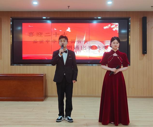 参加本次比赛的选手们来自各个学部不同专业班级,通过饱含深情的朗诵展示他们健康向上、斗志昂扬的精神风貌。其中计科2003班选手周天威、牛宇芩朗诵“百年征程”时情感细腻,声音洪亮有气势,歌颂了祖国历史长河滚滚,获得评委和观众们的一致好评。此外,汉语言2101班选手姚丽君和巴晶晶用优美激昂的文字表达了对祖国的爱意,用声音表达了自己对祖国情感的坚定。