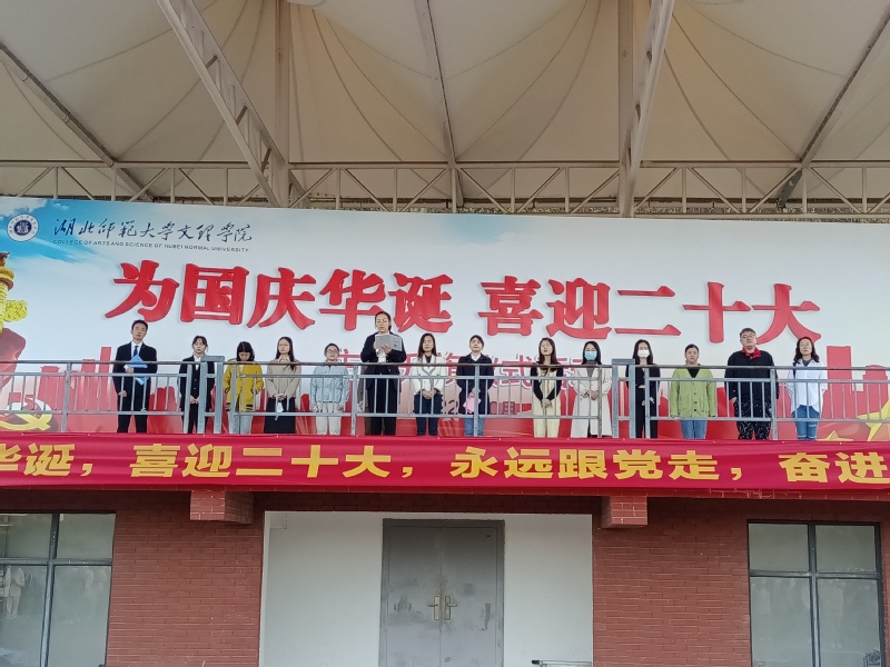 云天收夏色,木叶动秋声。为大力弘扬青年学生的爱国主义精神,xingkong登录入口人文学部于2022年10月10日早上6点40分在田径操场隆重举行了以“喜迎二十大,骄阳更照国旗红”为主题的升旗仪式。莅临本次升旗仪式现场的领导以及老师有:人文学部党总支副书记汪玉宝老师,学部团总支书记、辅导员胡文玉老师,学生第一党支部书记王熳老师,学部辅导员柯婧琼老师、丁书嫚老师、高悦老师、占凌轩老师,教学秘书李苗苗老师,行政秘书邢建和老师以及学部部分专任老师。