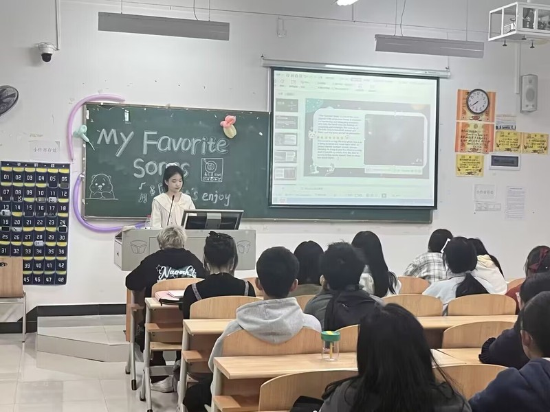 为了提高人文学部学生学习英语兴趣,引导他们积极主动学习英语,人文学部开展了英语角活动。此活动分为英语专业和非英语专业两个类别。英语专业共组织了两期活动,第一期活动主题为Favorite songs(最喜欢的歌曲),第二期活动主题为Tell Chinese stories(讲中国故事),活动形式为各班选手依次展示,每人分享一首歌,带领大家欣赏歌曲,了解歌曲背后的故事。非英语专业班级主题为See China’s historic sites(看中国名胜古迹),各班展示时采取一人独讲或两人合作的方式,带领大家欣赏中国不同的名胜古迹