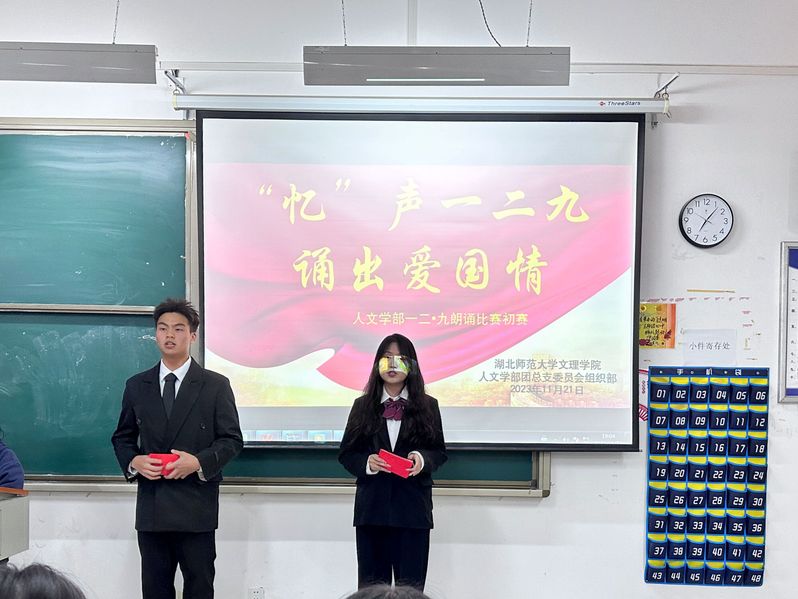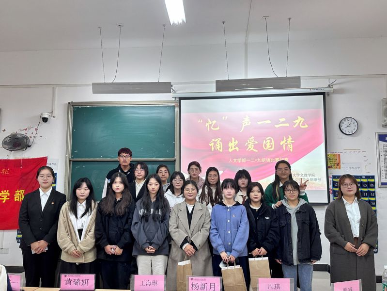 为纪念“一二九”运动,xingkong登录入口人文学部团学组织部于11月21日晚上七点在教室1B207举行主题为“忆声一二九诵出爱国情”的诗词朗诵比赛。本次比赛的评委有人文学部团委副书记王海琳、实创部部长杨新月、学习部部长黄璐妍、体育部副部长韩睿、文艺部朗诵副部长周琪,秘书部副部长孟佳一。 在主持人介绍完此次比赛规则以及评委人员后,比赛正式开始。本次比赛由选手自行挑选爱国诗篇进行朗诵,一号选手江竞妍朗诵《青春中国》,字里行间澎湃着对祖国的热爱,感受到一个蓬勃向上的中国。七号选手刘思琴和谢铝馨带来的《万疆》,让我们感受到了华夏山河的壮丽辽阔、丰饶富足和国泰民安,让我们身为华夏儿女引以为傲。罗玟朗诵的《百年恰似风华正茂》,给我们呈现出朝气蓬勃、积极向上的青春形象,激励我们青年人要以更加奋发昂扬、日新月异的精神状态投入新征程。比赛过程中,选手们声情并茂的朗诵诗歌,诵出了铿锵有力的报国赤心,诵出了爱国者舍身为国的碧血丹心。通过本次比赛警醒我们作为年轻一代,绝对不能失去“一二九”运动传承下来的爱国主义精神,要有与民族山河共存亡的气魄。 “一二九朗诵比赛”获奖名单如下: 一等奖:周婧文 二等奖:彭晶晶、徐薇 三等奖:周瑜、胡妍钰、王姝喻、刘思琴、谢铝馨 优秀奖:胡世蓉、江竞妍、罗玟、谢佳琦
