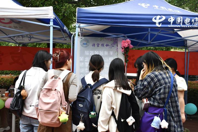 紫薇盛放映诗意,翰墨飘香润心田。活动不仅展现了紫薇花的美丽与文化魅力,更通过诗词的诵读、创作与赏析,让同学们深入体验传统文化的博大精深。活动一共分为词海拾贝、墨客追踪、诗宫探秘、飞花令四个游戏板块,通过每个环节的积分累计兑换精美定制的团扇、水杯等奖品,人文学部紫薇诗词文化节活动现场热闹非凡,吸引师生们伫足,诗词爱好者齐聚一堂。
