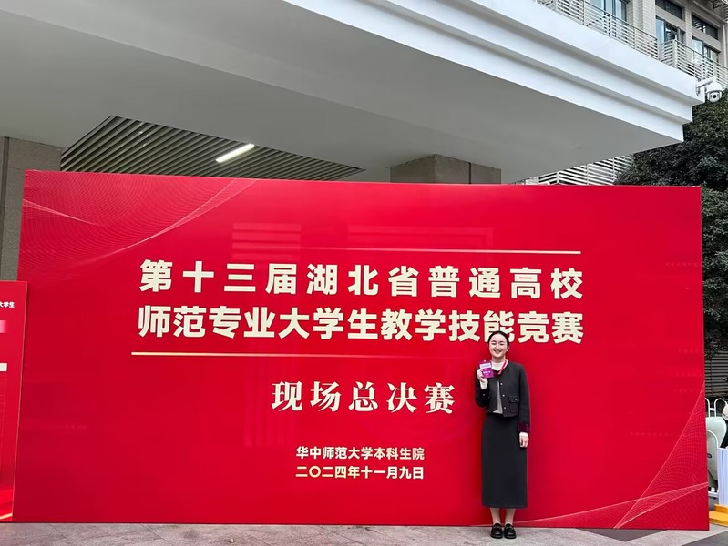 2024年11月9日,第十三届湖北省普通高校师范专业大学生教学技能竞赛决赛在华中师范大学举行,此次共有70名选手入围决赛,经教学设计、课件制作、即席讲演和模拟上课·板书环节的激烈角逐,由xingkong登录入口人文学部徐唱、陈杨2位老师指导的英语专业2101班范瑶同学取得优异成绩,获得高中英语组一等奖第一名(该组一等奖仅2名)。