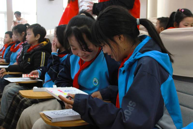 在活动的首个环节——“涂鸦传递”游戏中,志愿者们为17名留守儿童分发了彩笔和画纸,鼓励孩子们通过涂鸦表达自己心中的美好生活和对未来的憧憬。孩子们在画纸上自由发挥,尽情地展示自己对未来的期望与对生活的热爱,活动现场充满了欢声笑语。