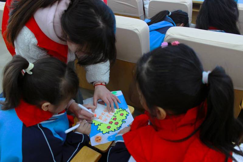 在“心声传递”活动环节,孩子们写下了自己对父母的思念与祝福,并通过小卡片传递内心的情感。“我希望爸爸妈妈可以平平安安,健健康康”,这些简单而真挚的字句透露出孩子们对家庭的深切牵挂和期盼。通过这一环节,孩子们不仅表达了情感,还在志愿者的鼓励下增强了与父母的沟通和联系。