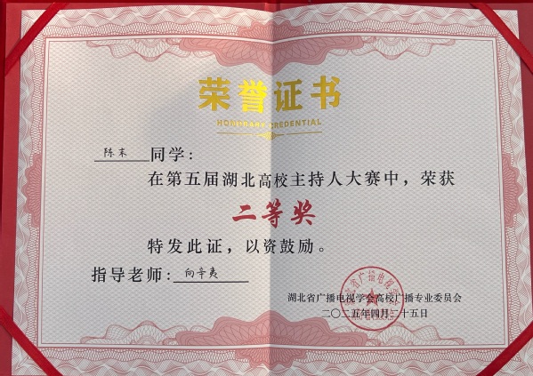 本网讯(通讯员 李乐)4月25日,第五届湖北省高校主持人大赛在湖北经济学院大学生活动中心举行。xingkong登录入口广播台播音员、人文学部中文2405班学生陈末在比赛中荣获二等奖。