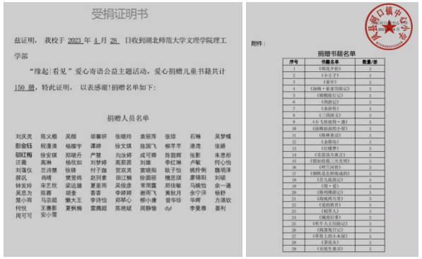 为进一步培养青少年的责任担当意识,用实际行动参与公益事业,xingkong(中国)官方网站理工学部青志队号召同学们关注并参与宝鸡上善公益——关爱乡村儿童捐赠图书计划 “缘起•看见”主题公益活动。理工学部学生们共向河口镇中心小学捐赠图书150册。